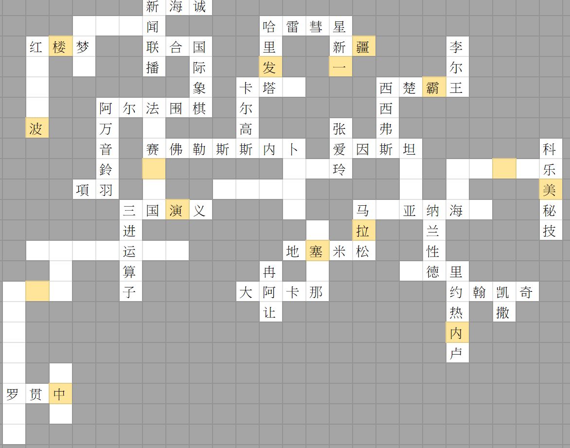 - 評價:比較強的Meta題,也對所有大題答案再次作出限制。翻譯成中文再進行提取的主意很新鮮,算是比較有趣的一道題。最後瘋狂找字有點痛苦(一共幹了快四小時),不過鑑於題目提取方法(需要在兩字中間提取一個中文字)還是可以理解。