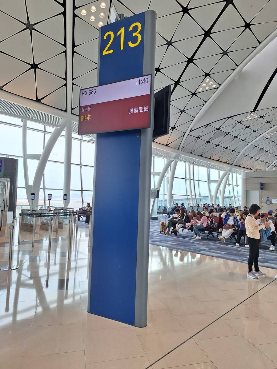 Thomas和Tommy在大約十時先後抵達機場。Tommy的行李箱還是和我的一模一樣,而Thomas的還是一如既往地輕便,當然也不需要寄倉。我們辦理完登機手續後便前往登機閘口,還在閘口碰到飛往成田的大學同學,和他嘮叨了幾句後便上機了,出發前往熊本。