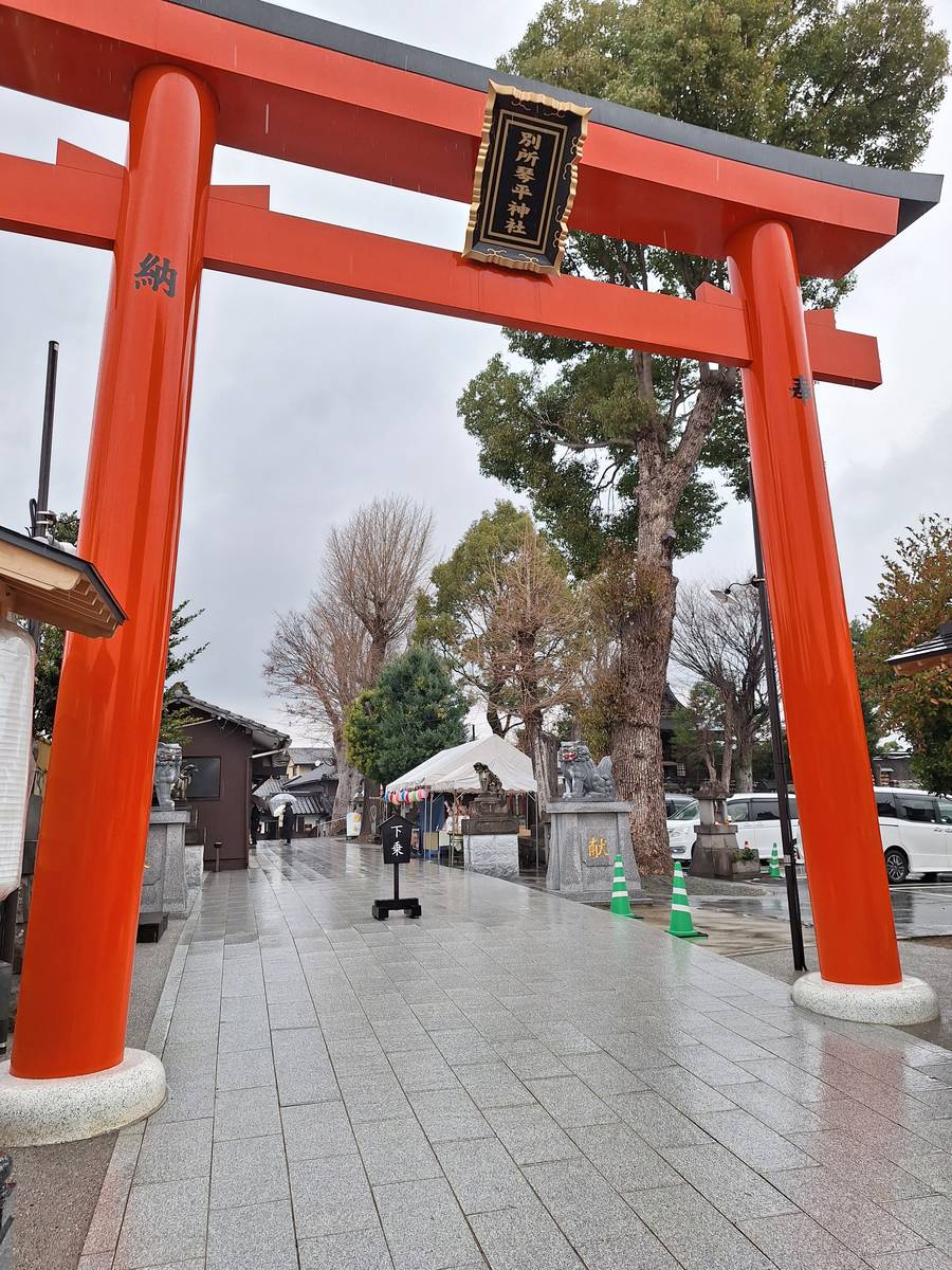 逛完商業街後,我們便一路向南行,在雨中前往別所琴平神社。即使下著雨,還是有人會來參拜呢。