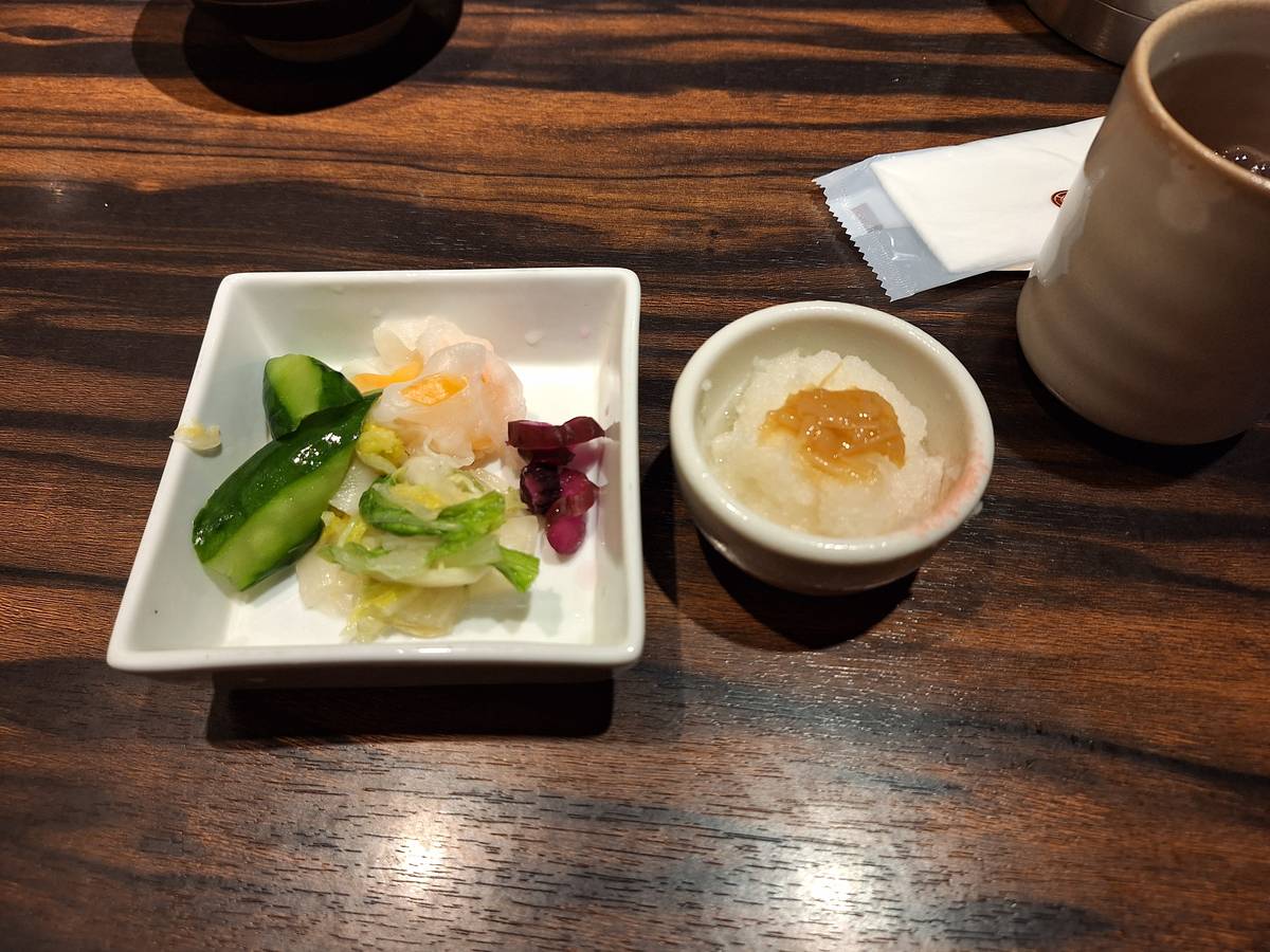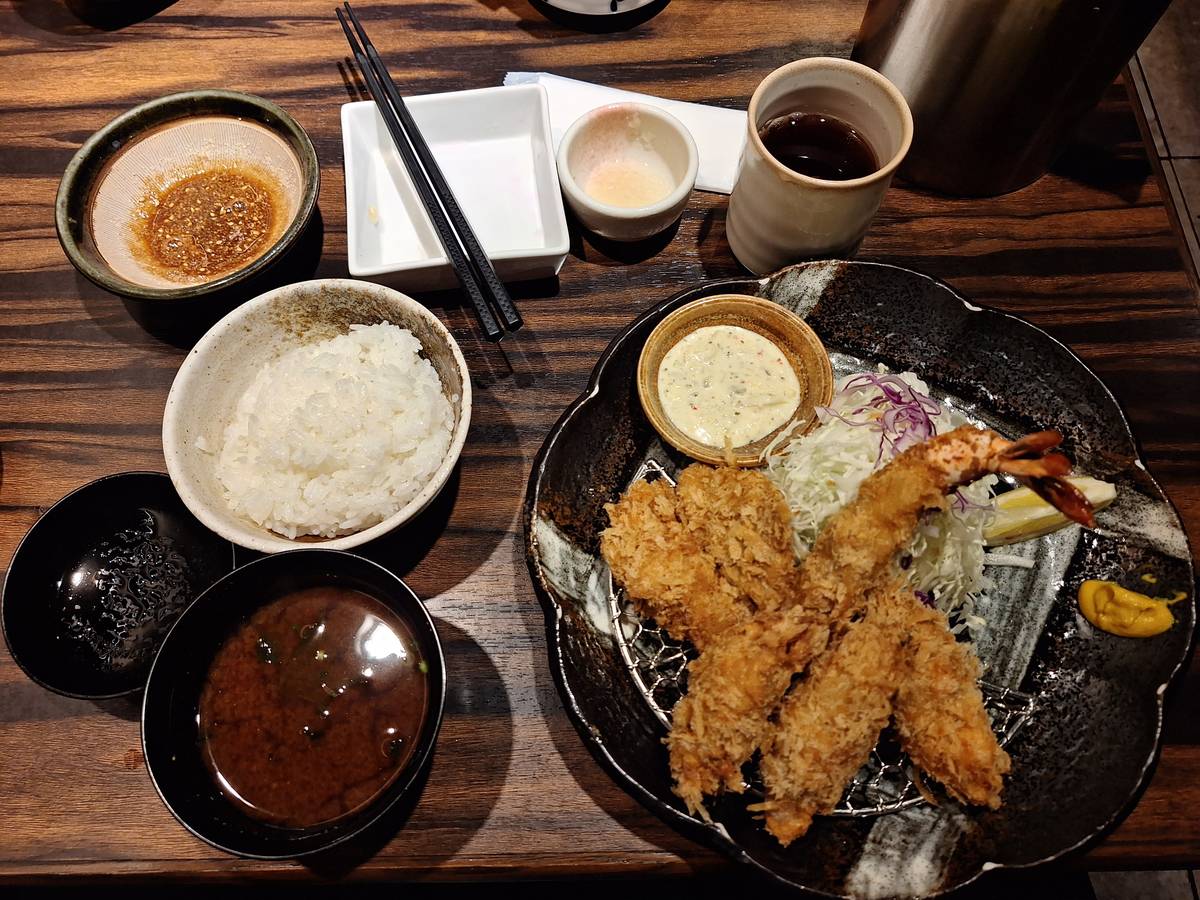 我甚麼都想要試一下,所以點了個炸物拼盤,除了炸豬排外,也有海老和炸蠔。另外,他們在上菜時也會贈送醬菜和蘿蔔泥。醬料可以自行調味,自由選擇日式或西式醬料,也能夠自己磨芝麻。整體來説很美味,果然有人推介的,整個體驗就是不一樣。