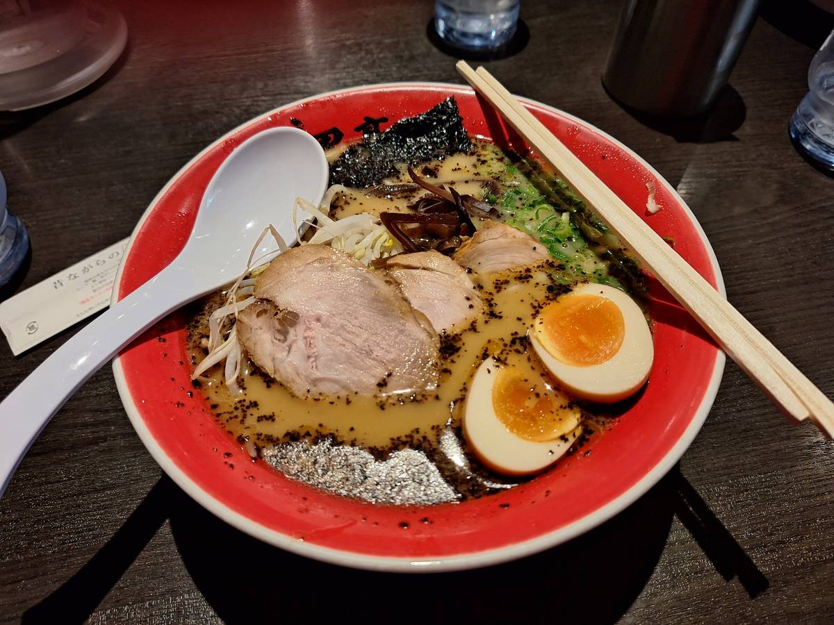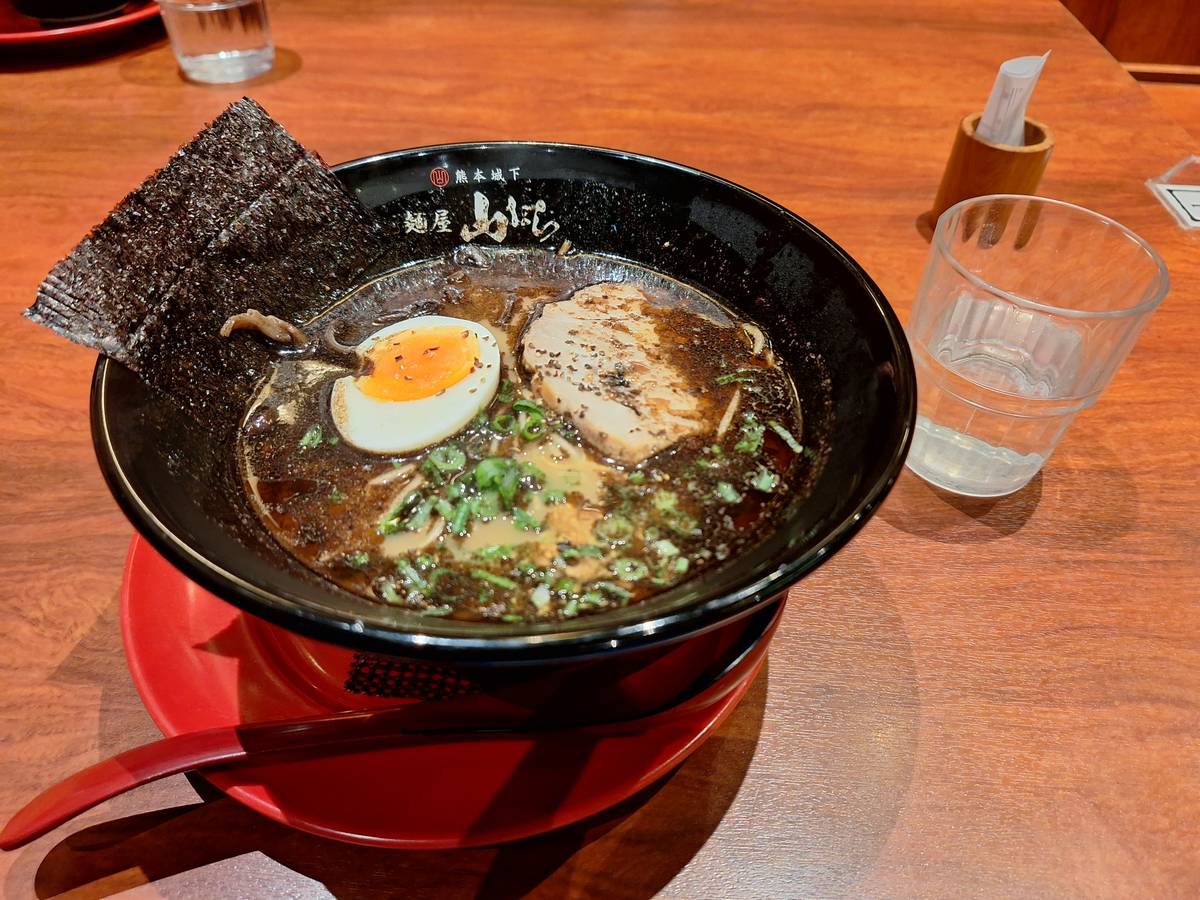 馬肉和赤牛都是熊本當地的美食,只不過我們在這次旅程中都沒有享用過(有點可惜)。我們在附近的餐廳裡各點了一碗拉麵,拉麵總體來說還算可以,不過湯底有點鹹(不太喜歡湯底太鹹的拉麵)。
