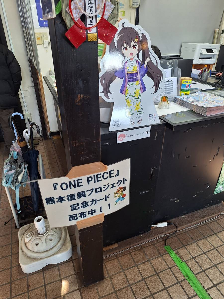 接著,我們便乘搭巴士至阿蘇站,途中還塞車塞了一會。下車後,我們在旅客中心稍作停留,拿了地圖和傳單,也看到了溫泉娘立牌。