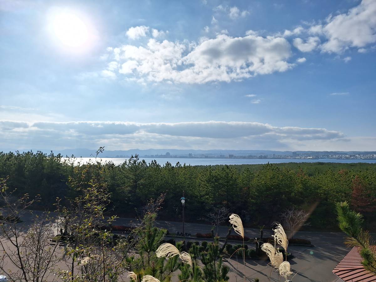 除了我們外,也有不少遊客不知道這件事,只能在廣場逗留。廣場除了巴士站外,只有遊客中心和一座小神社。既然都來到了,我就在附近拍了些照片,然後在遊客中心買了些食物和手信。