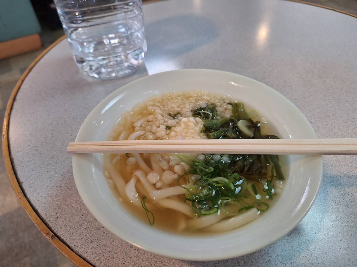 旅行前。我在網上搜集資料,發現櫻島渡輪上有一家餐廳,而餐廳售賣的烏冬、蕎麥麵也是櫻島名物之一。登船後我走了一圈,果然真的有一家神奇的船上餐廳。我趁着開船前,就在這間餐廳買了碗烏冬。