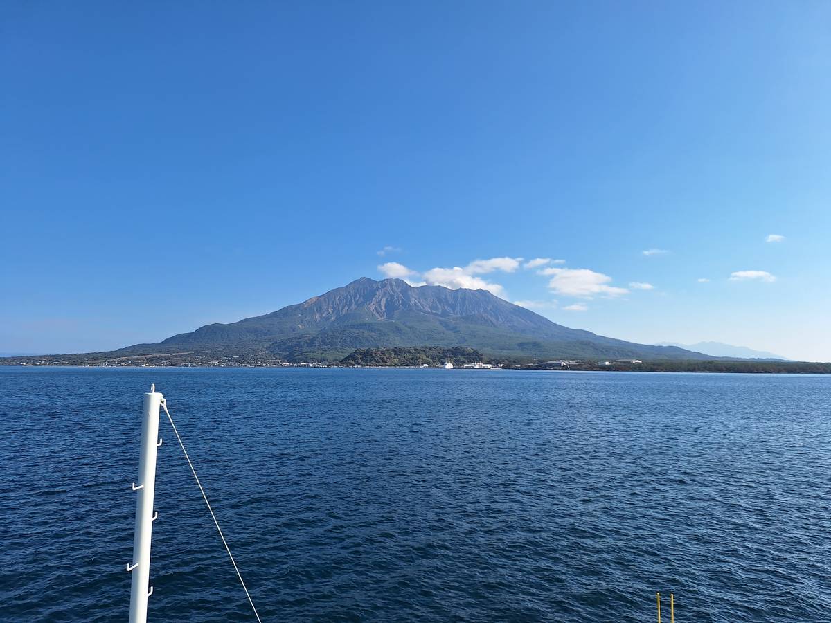 我很快便吃完烏冬了,於是便在船外走廊隨便逛逛。船程只需約15分鐘,櫻島的火山很快便映入眼簾。