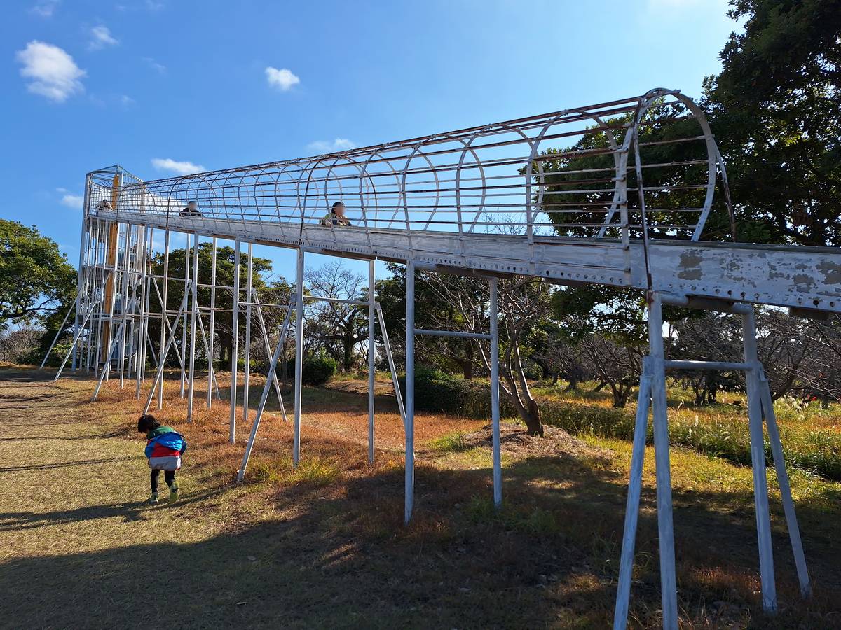 此外,地圖簡介上寫著,恐龍公園有一條長約一百米的滑梯。然而,所謂的滑梯,其實只是約三層樓高的滾輪滑梯……