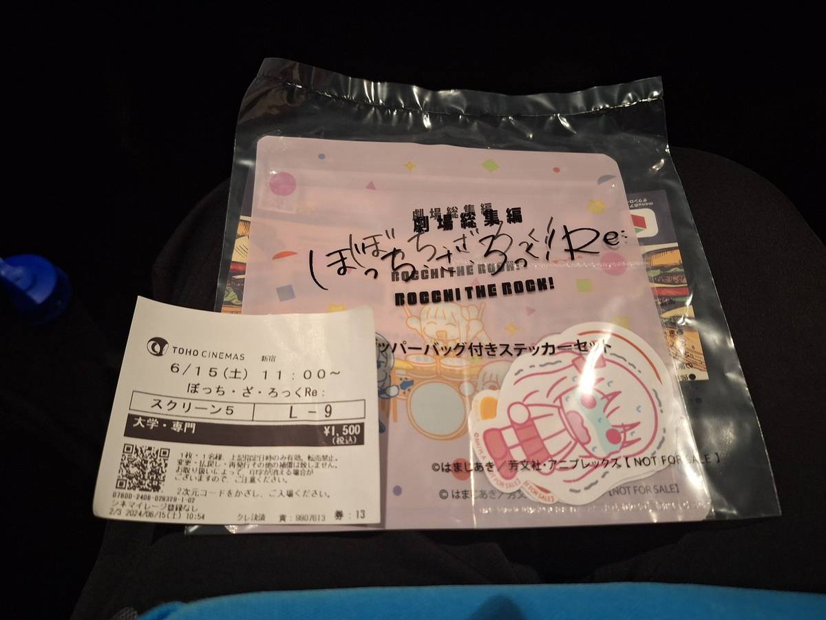 在離開東京前,我們會在早上看《劇場總集篇 孤獨搖滾!Re:》。因為電影十一時就會開始放映,所以Peter、Tommy和我在新宿鎖好行李後,也來不切去其他地方,便立刻趕往電影院。到了電影院後的流程和上次一樣,在取票機取票,然後進場的時候職員就會頒發特典。