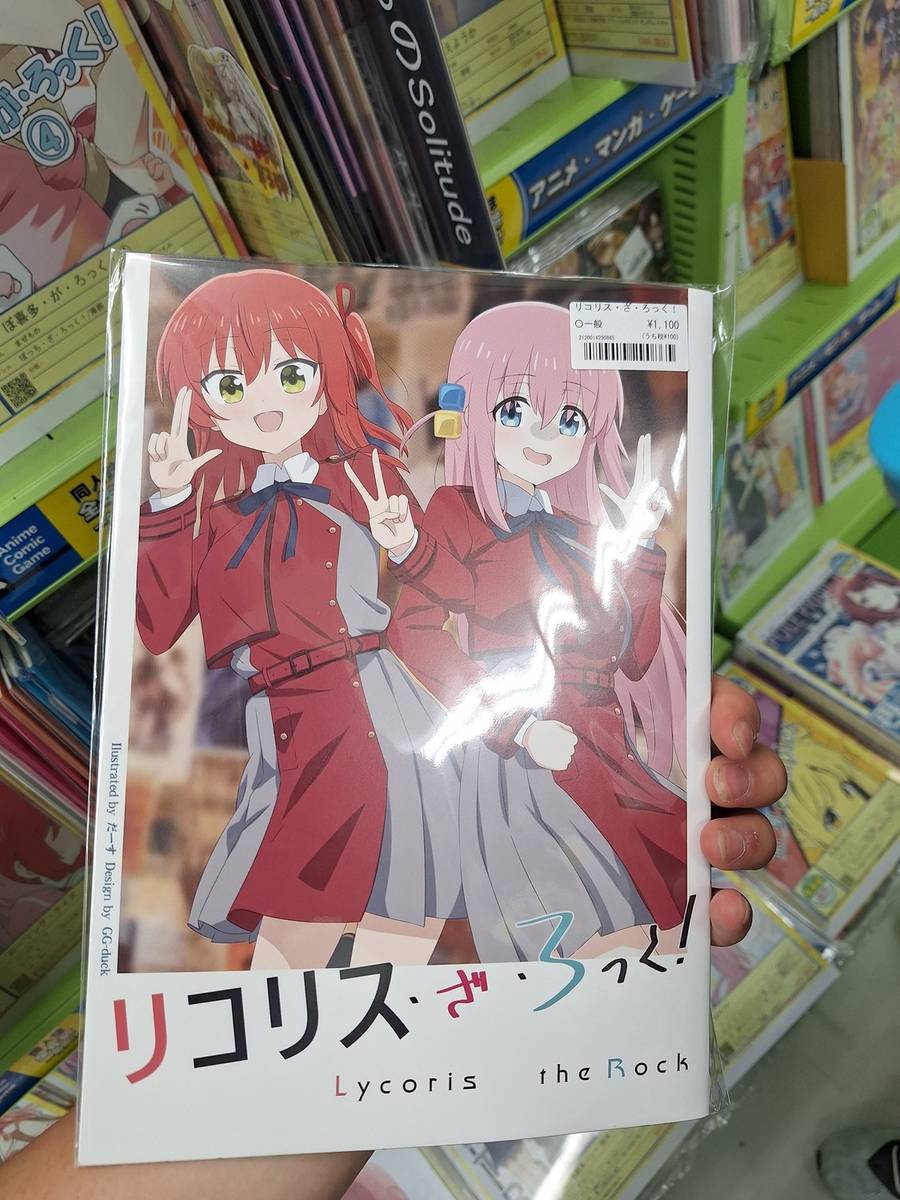 接下來便是那本同人誌了。這次,店員把書的名字告訴了另一個店員。那個店員身上掛着數個那個動畫系列的襟章,看起來就是那方面的專家(或粉絲)。我跟着他走到貨倉門口,然後他便很迅速地從貨倉拿出那本同人誌,交到我手上。看來他真的很清楚這個系列的書都放在甚麼地方,才可以不用在電腦搜尋,就立刻找到那本書。