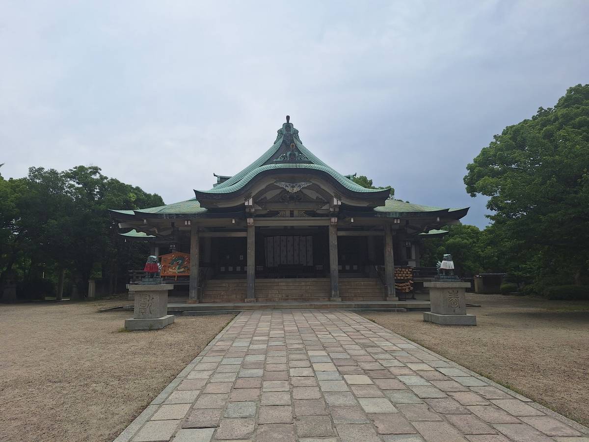 穿過大手門後,我們沿着右邊一路走至豊國神社。豊國神社和其他神社不一樣,屋瓦和大阪城一樣都是淺綠色,看起來十分漂亮。