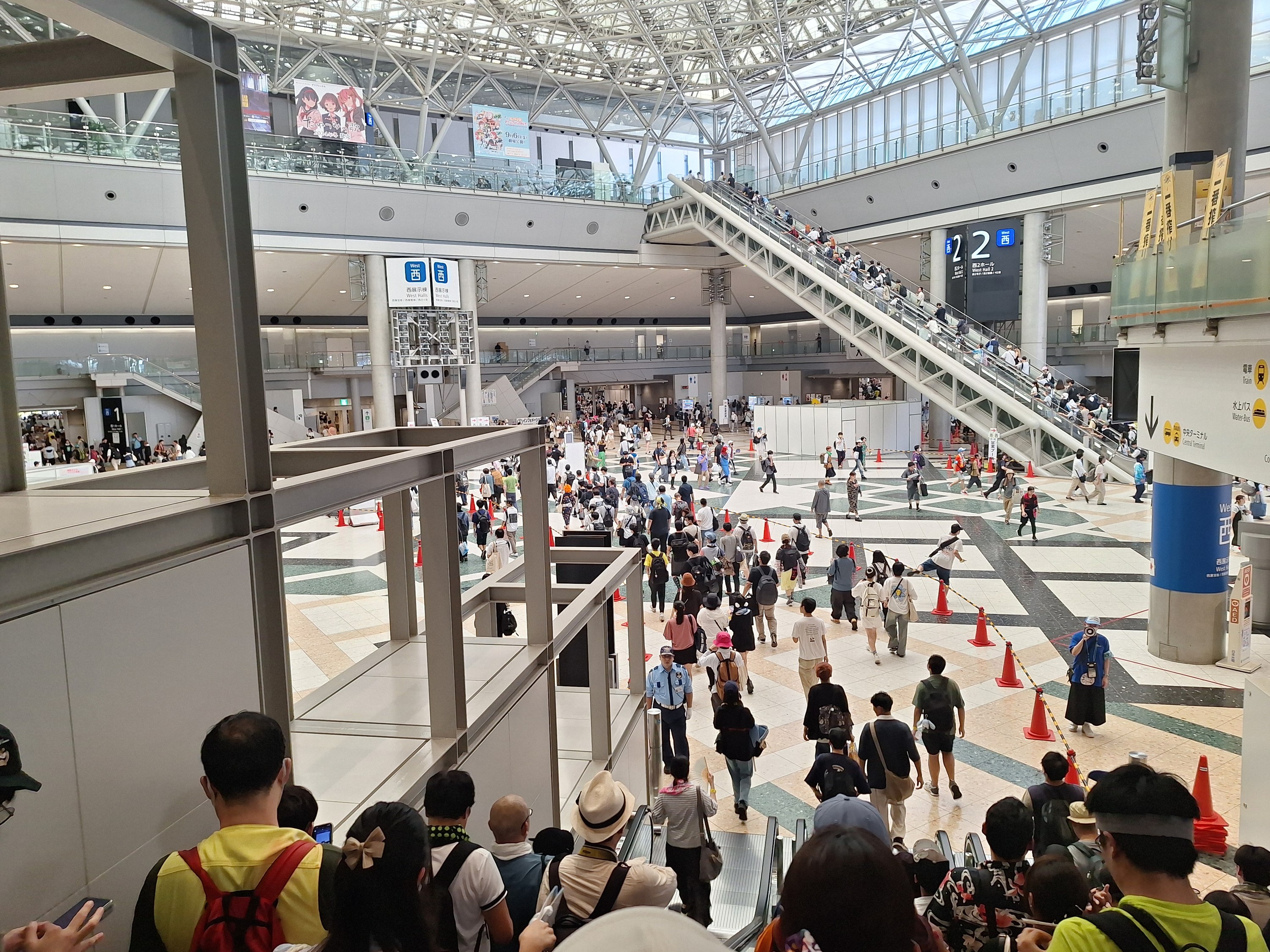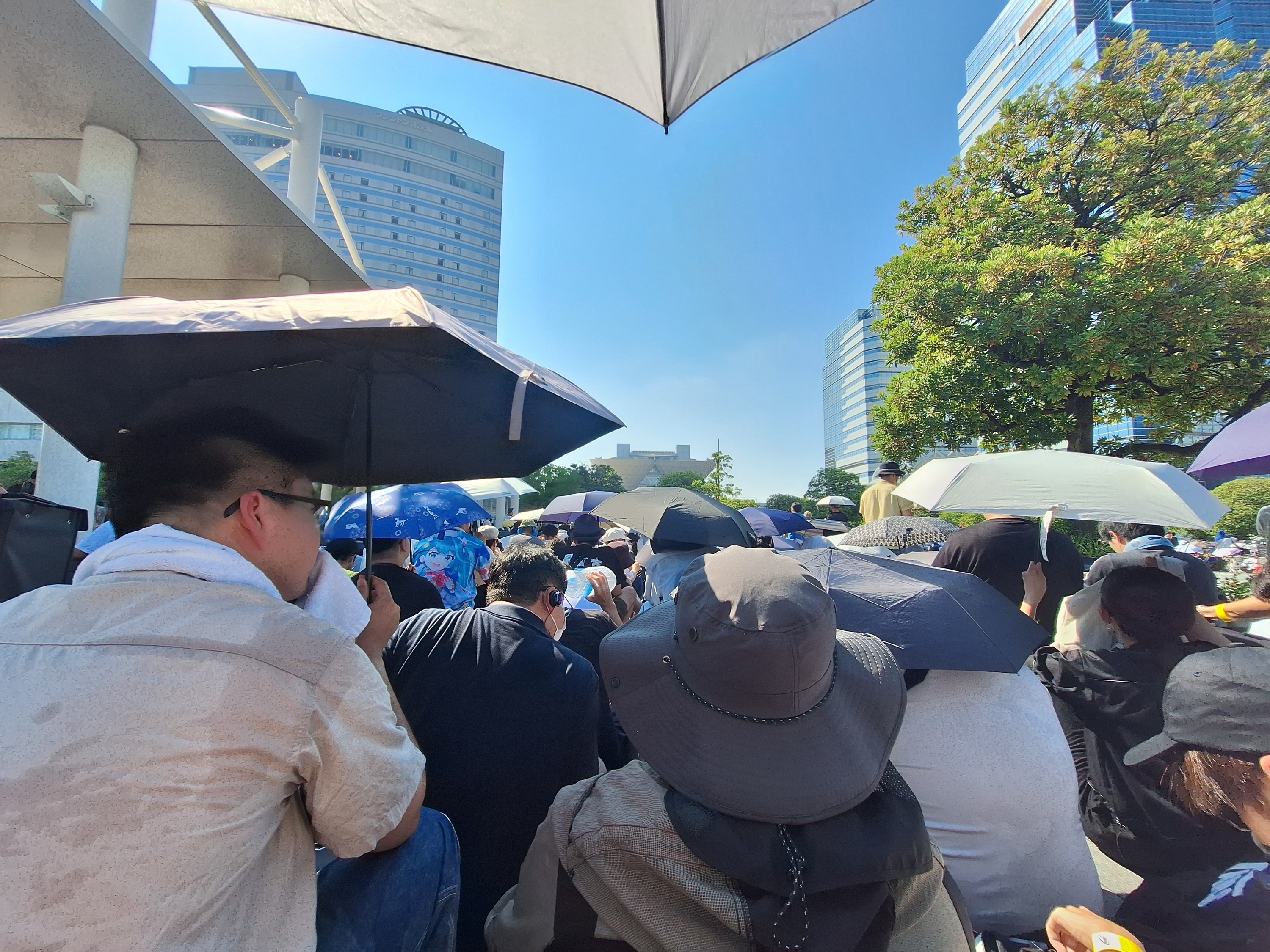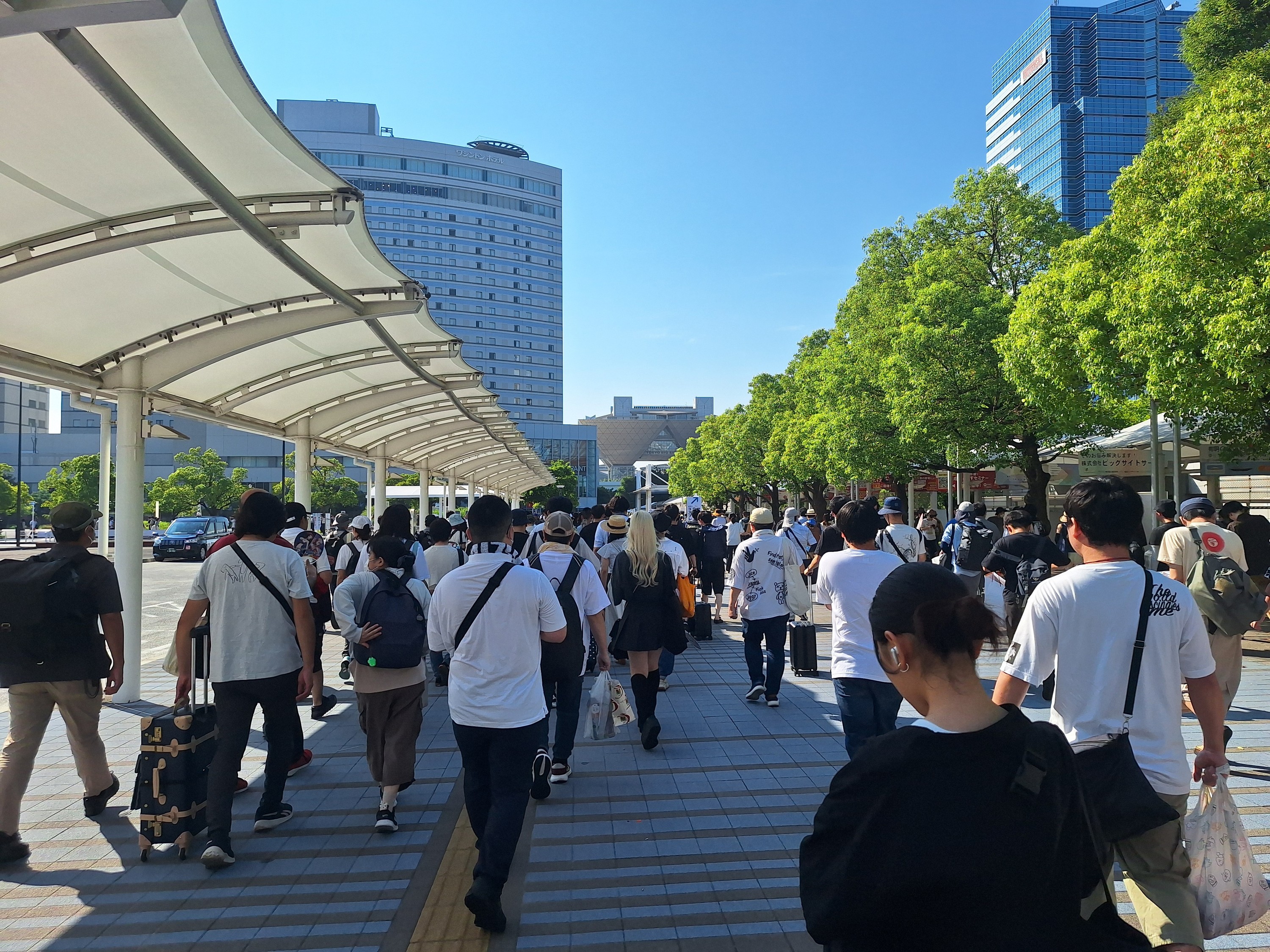 出站後,我先在國際展示場附近的攤檔把E-PLUS的電子門票換成手環,然後再按照指示牌去西館排隊。(我自己想買的東西位於西館。)