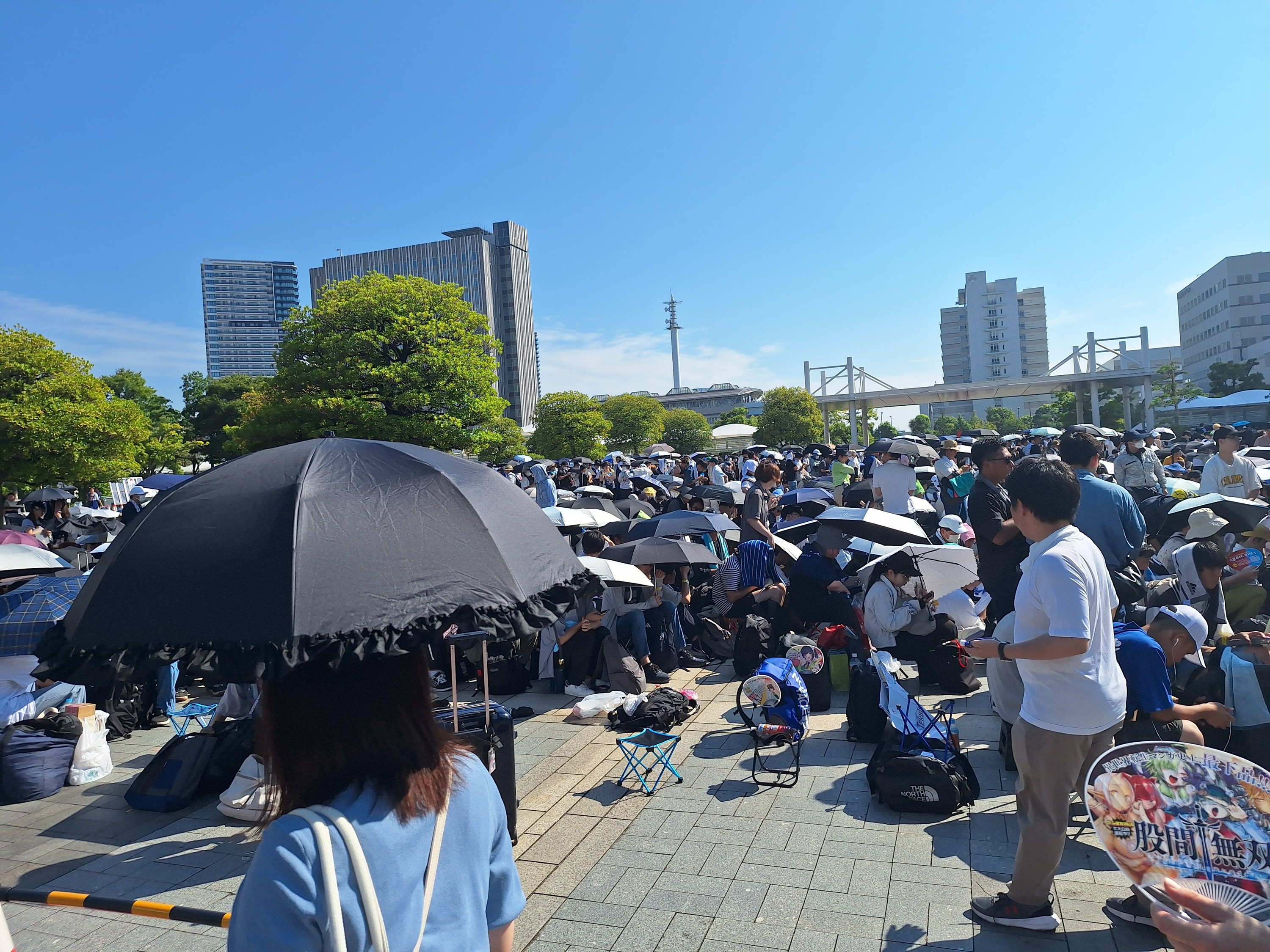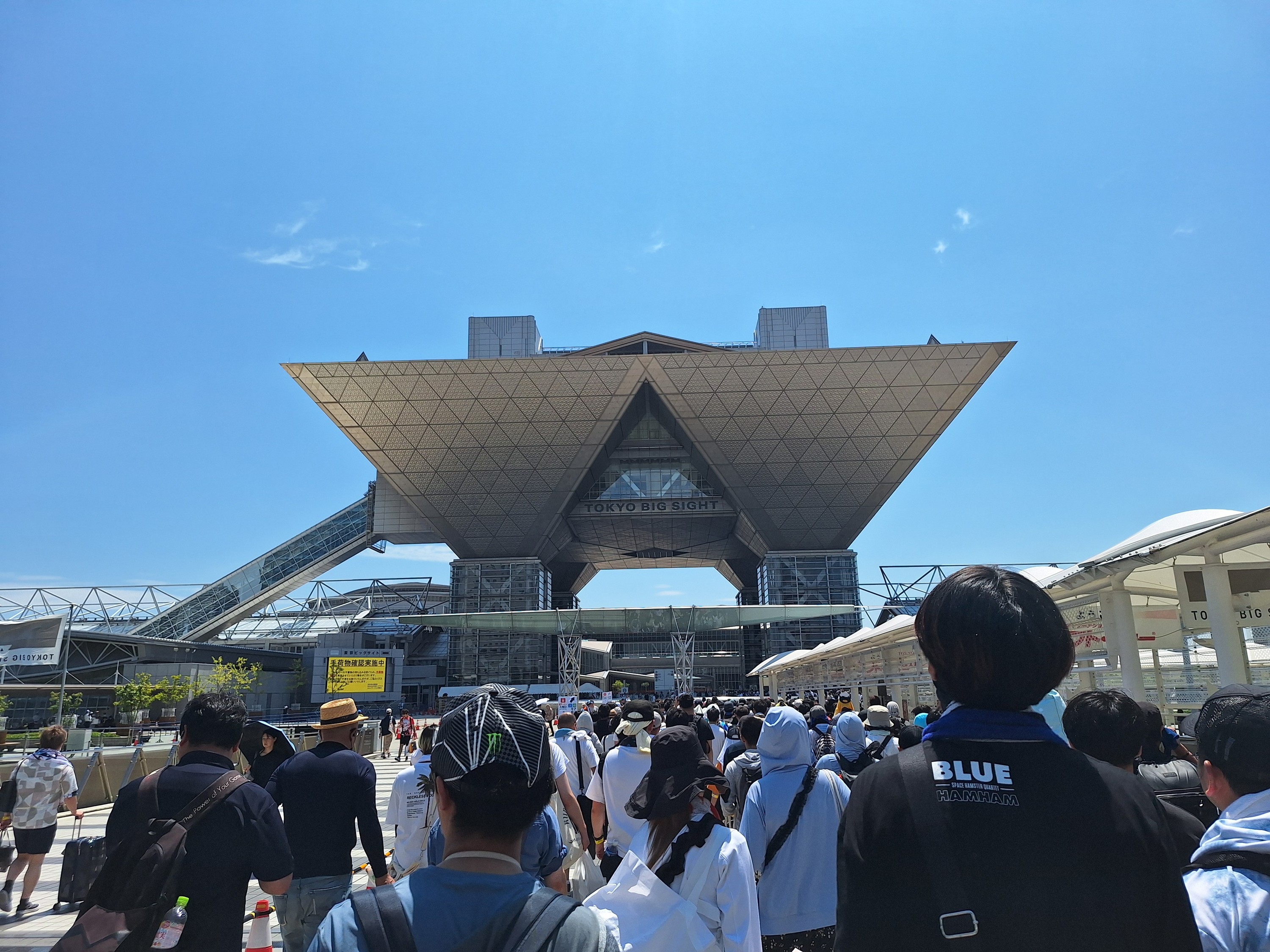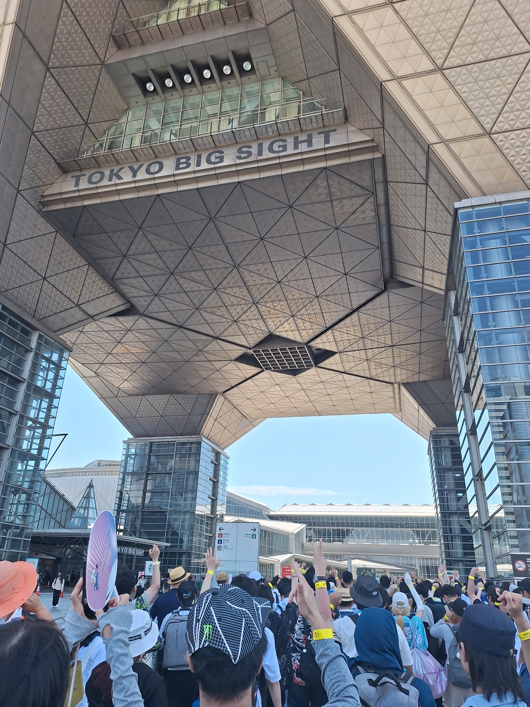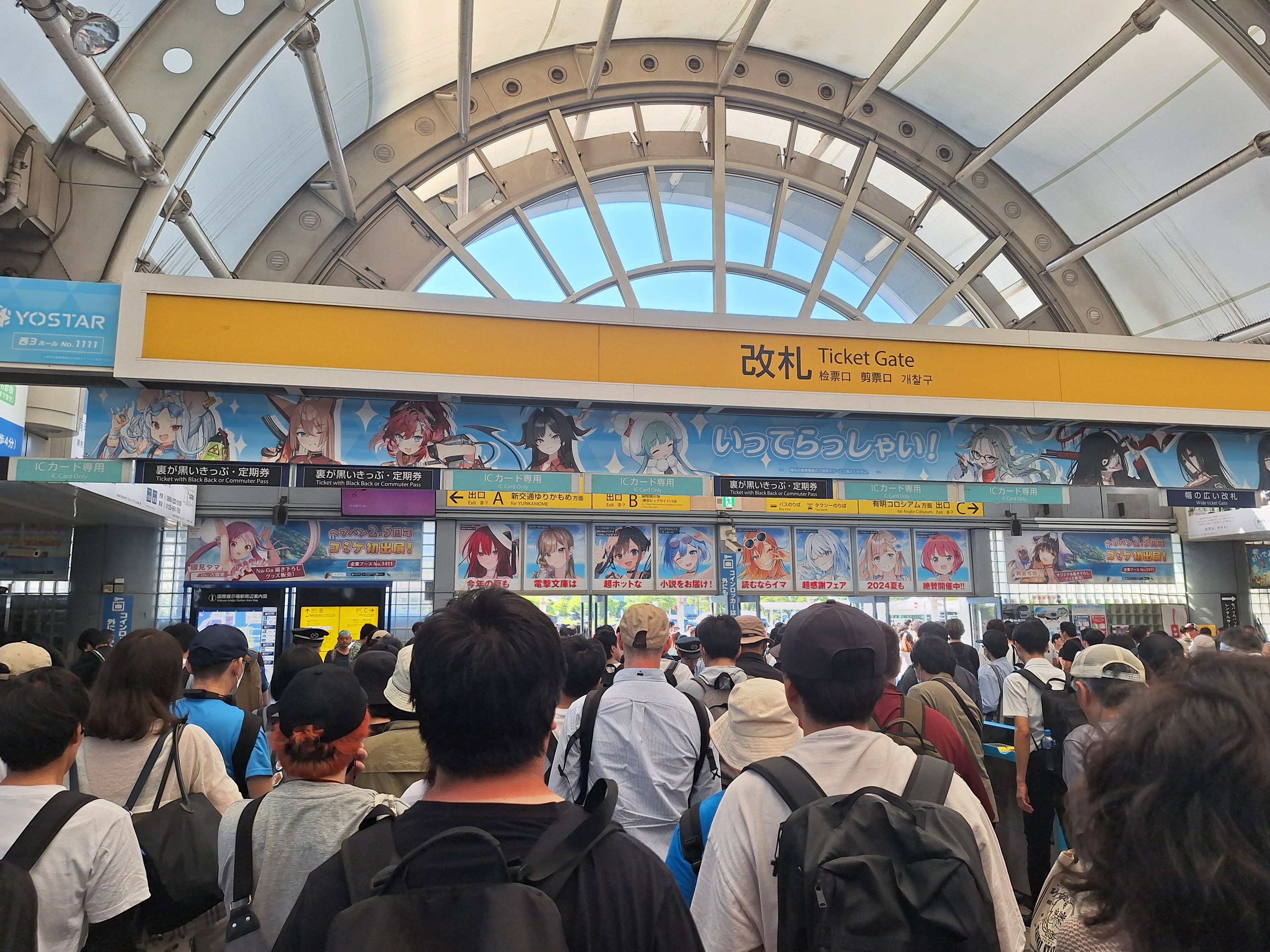 出站後,我先在國際展示場附近的攤檔把E-PLUS的電子門票換成手環,然後再按照指示牌去西館排隊。(我自己想買的東西位於西館。)