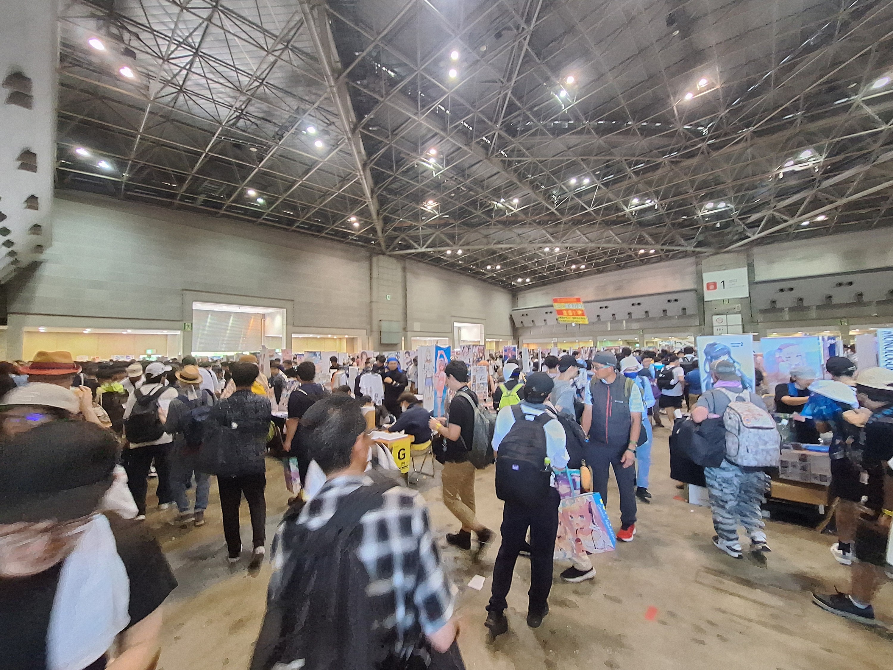 這時會開始有攤檔收攤,所以也有「想去的攤檔已經收了」的情況出現。不過同樣地,有不少參加者會趁著現在離開會場,所以會沒上午擁擠,比較好逛。