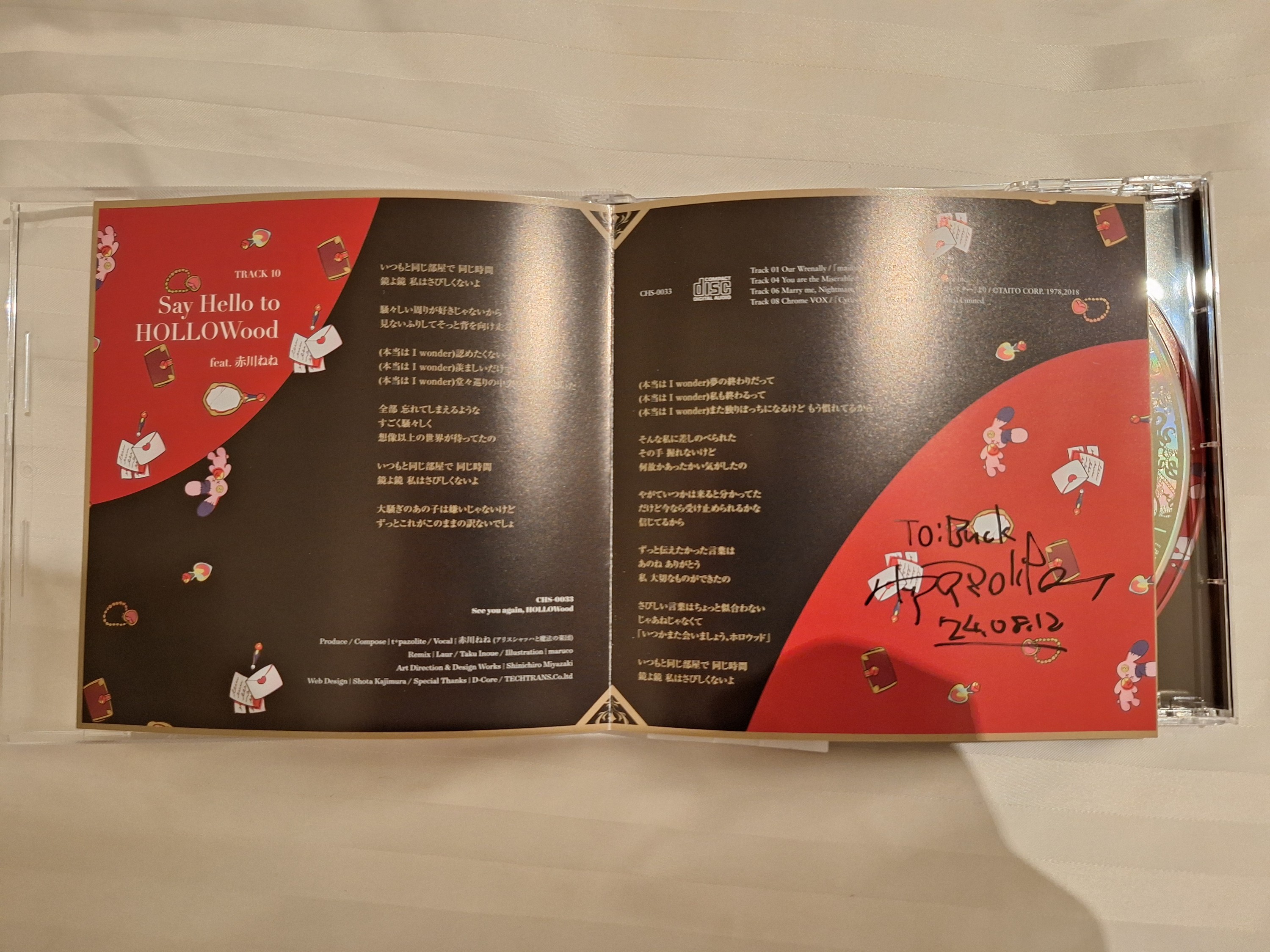 t+pazolite老師只限簽一枚CD,就拜託他簽了「See you again, HOLLOWood」,不過也是所有簽名中最精緻。