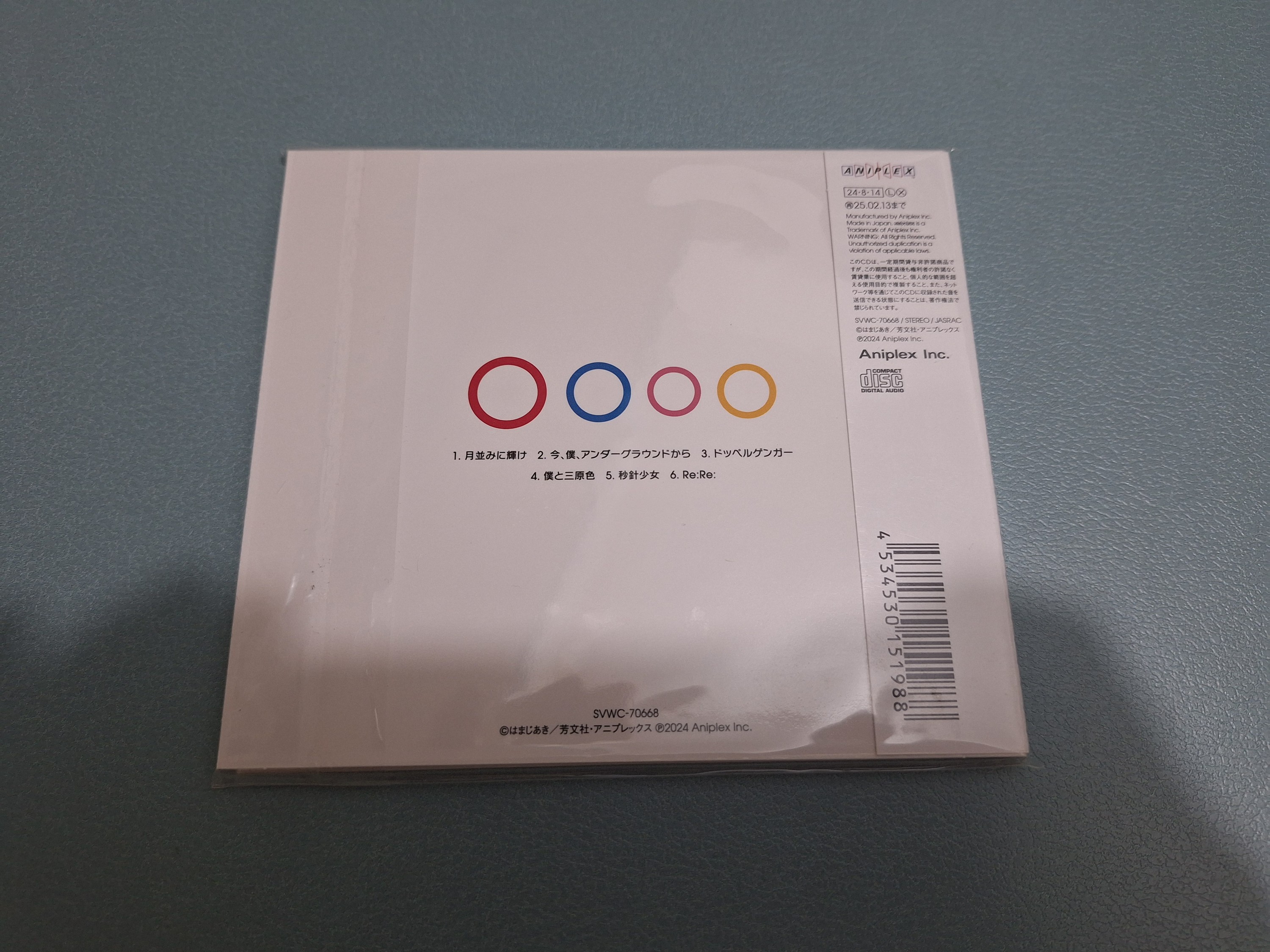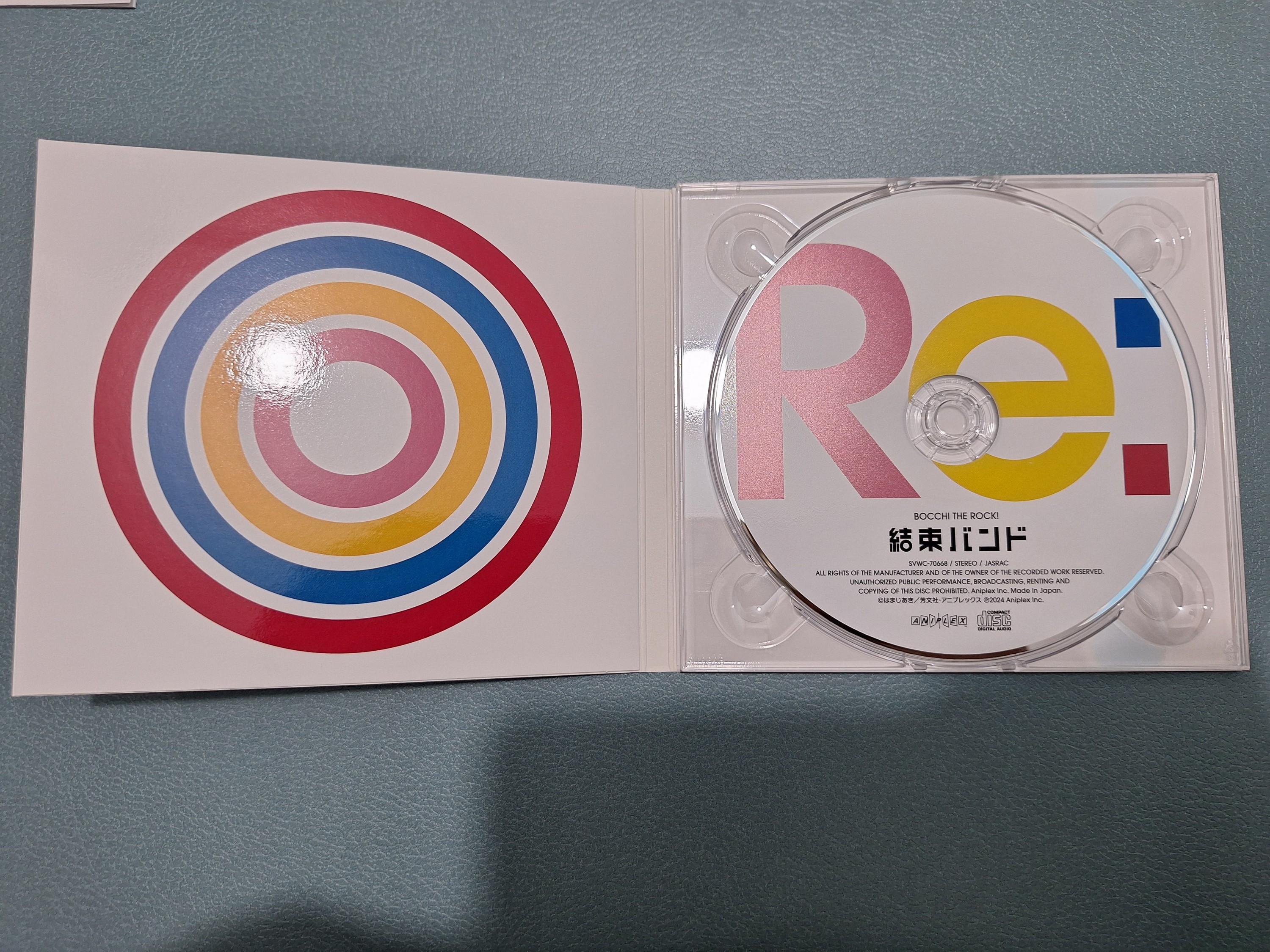 然後是CD盒的內部。右邊的「Re:」剛好由四部分組成,所以當然是以四人髮色作為配色。個人很喜歡左邊同心圓的設計。