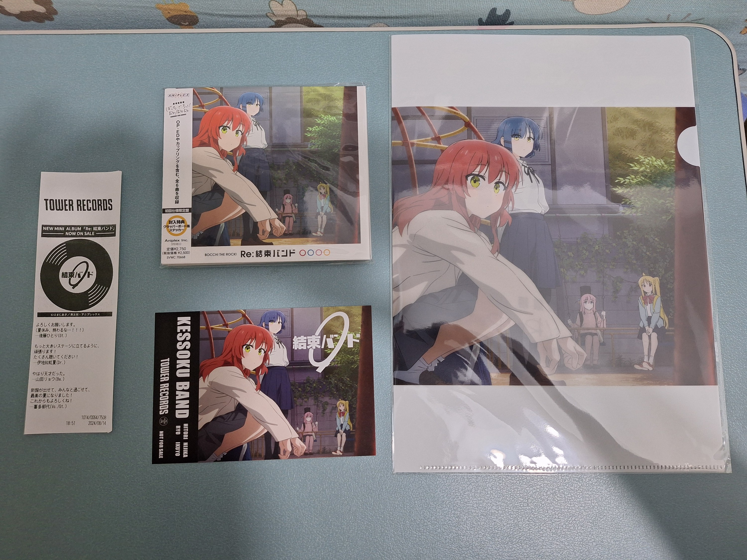 接著是特典。由於我是從Tower Records門市買的,因此除了有文件夾和明信片外,還拿到一張特殊收據,上面印有團結Band成員的留言。