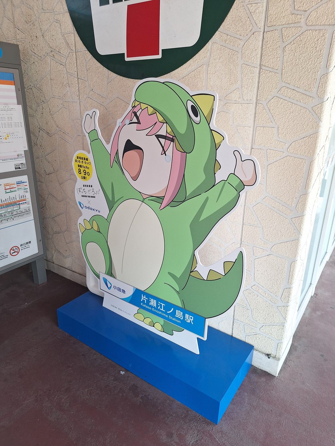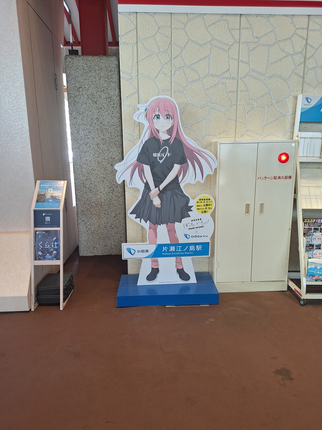 江之島站的月台就放有小孤獨的立牌,頭髮隨風飄逸,很有動感。