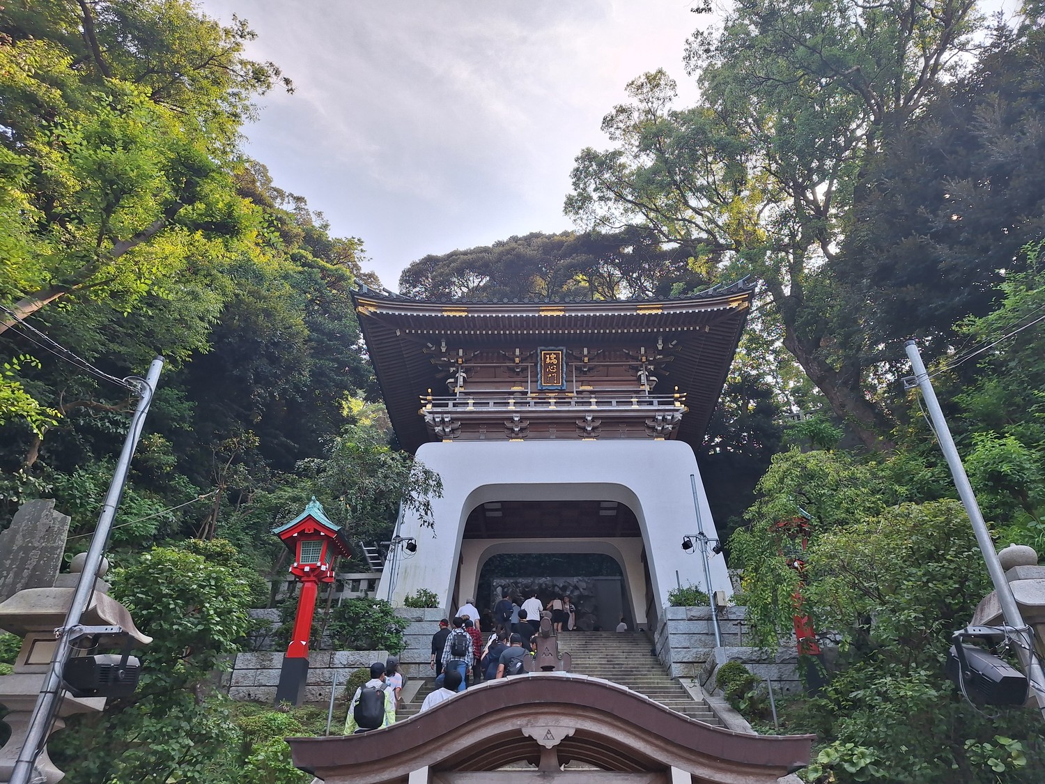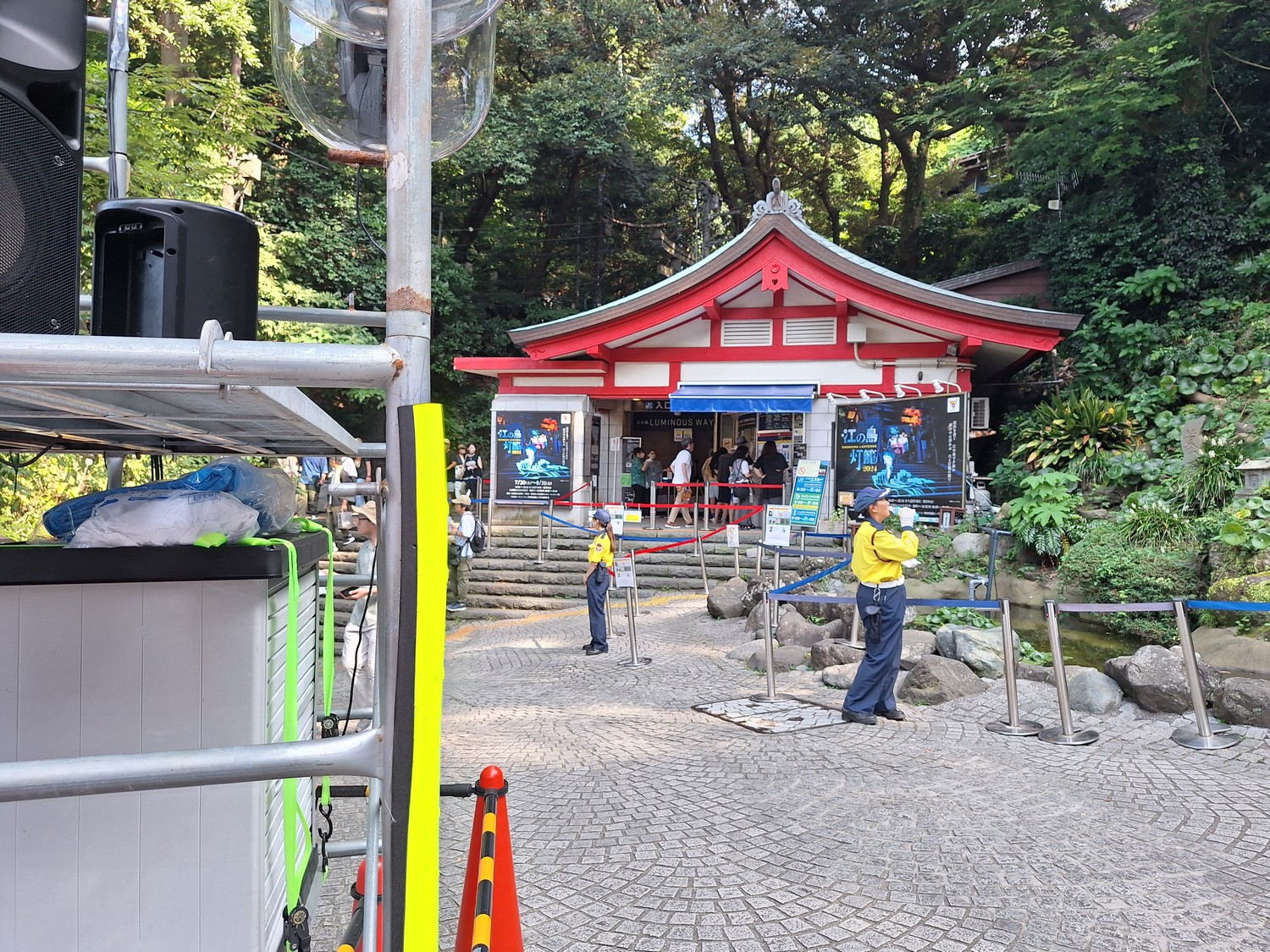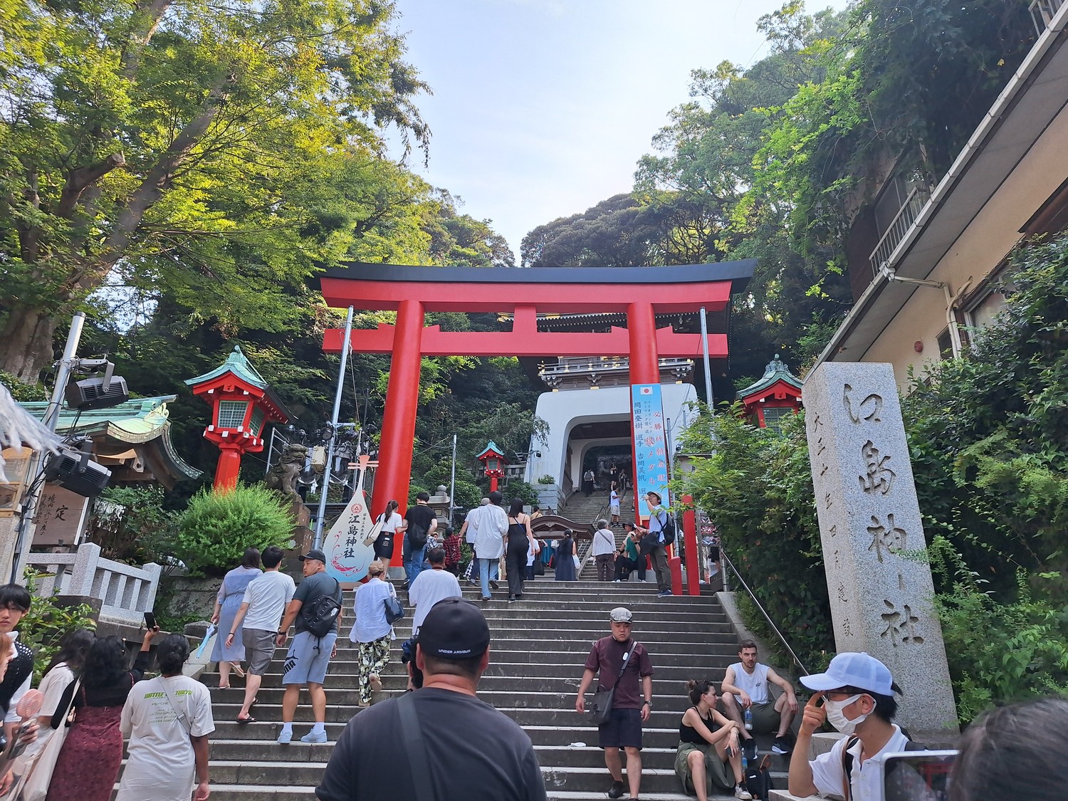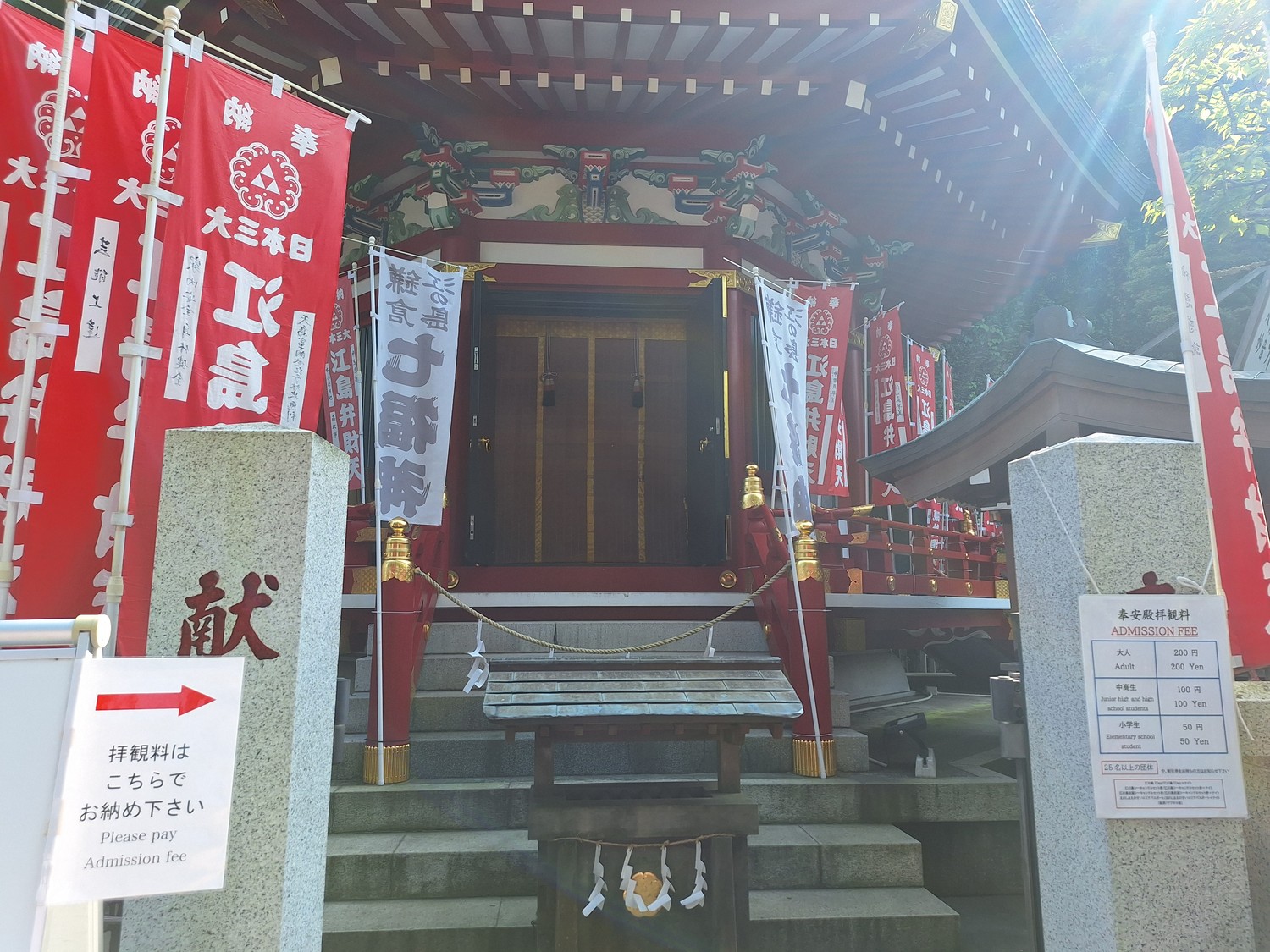 江島神社是日本三大弁財天神社之一,搭乘第一段電梯後就到了邊津宮。團結Band供奉過的妙音弁財天也在裏面。不過進去供奉要付「拜觀費」,就沒入去了。