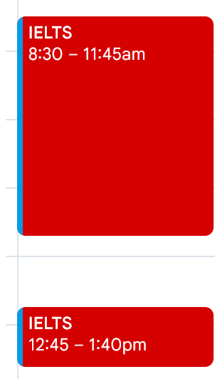 結果我搞砸了IELTS,還差點搞砸了GRE。不過,我搞砸考試的方式相當厲害:在考GRE當天我不知道要帶護照,要託家人幫我送去考場。我把IELTS搞砸的方式比GRE更厲害:雖然我已經把考試時間寫在日曆上,但是我還是弄錯了考試時間,遲了整整45分鐘才到達試場。