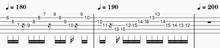 BPM每一小節加10,由160增加至200。